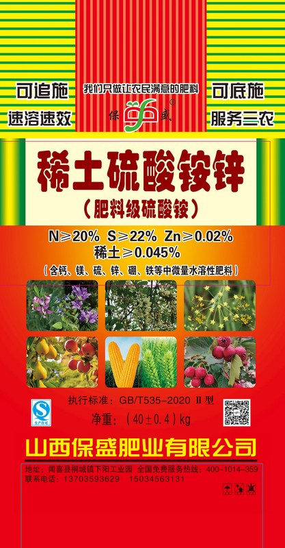 旱地玉米底肥、水浇低玉米追肥--稀土硫酸铵锌